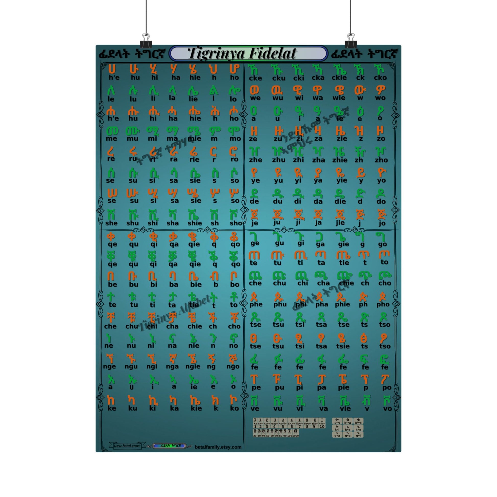 Tigrinya Alphabet, Tigrigna/Fidelat Geez/Fidelat Wall Matte Vertical Posters 18x24.